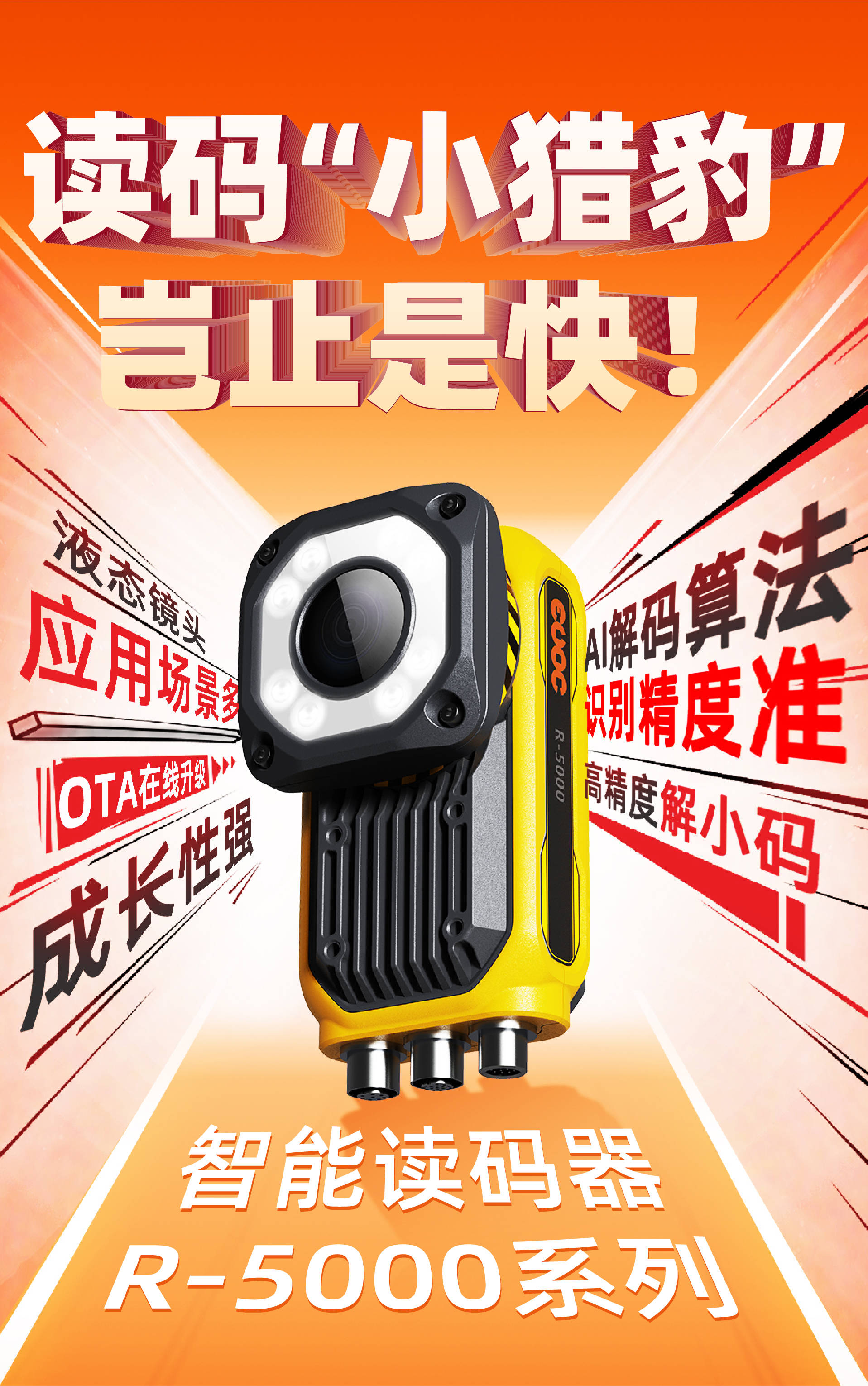 近日,开云电竞全新推出智能读码器R-5000系列,搭载液态镜头、深度学习算法,自动变焦速度与解码速度均有显著提高。R-5000具有应用场景多、识别精度准、成长性强等特性,能够快速精准读码,可为用户提供超强性能的读码解决方案。
